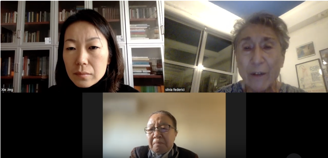 17日晚,费代里奇受邀与北京大学教授戴锦华、复旦大学副教授谢晶以“女性世界的破裂与共生”为题展开线上对谈。这位81岁的学者高兴地表示,这是她第一次与中国的女性主义者讨论相关话题。在讨论中,两位中国学者都对当下中国女性主义思潮感到振奋,但也为性别议题讨论中显现的某种极端个人主义感到忧虑。为此,费代里奇从她的长期研究和实践出发,分享了她的观点。