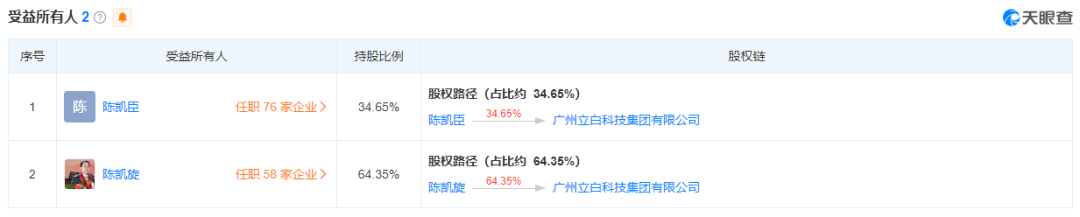 陈泽滨履新立白科技集团董事长后,“创一代”陈凯旋和陈凯臣成为陈泽滨以及立白员工们口中的“总顾问”和“副总顾问”,但穿透股权会发现,两位“顾问”才是公司大股东。
