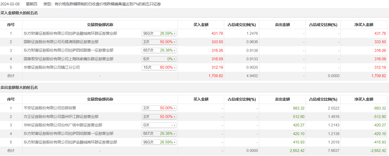 长江投资2月8日下跌5.78%,全天换手率14.79%,成交额3.46亿元,振幅8.51%。龙虎榜数据显示,营业部席位合计净卖出942.60万元。上交所公开信息显示,当日该股因日跌幅偏离值达-7.06%上榜,营业部席位合计净卖出942.60万元。