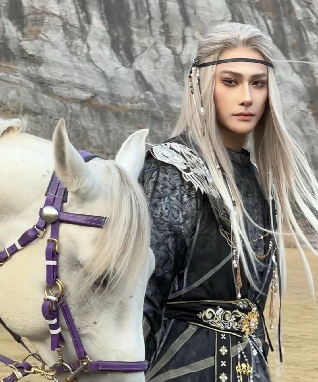有了精致的妆容作为铺垫,梦幻、唯美的造型是进一步的锦上添花。化妆师兔子大多采用二次元、西幻风格浓郁的造型风格,借此突出氛围感。朱梓骁身骑白马,宛如精灵王子,让网友感叹,爆改后的朱梓骁与《爵迹》完美适配。