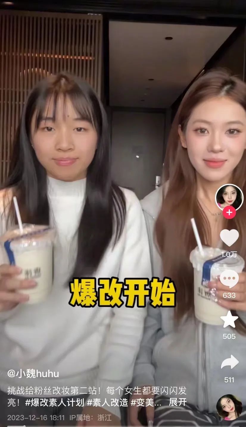 一方面,化妆师兔子走红之后,以@小魏huhu为代表的中腰部化妆师、美妆博主开始快速复制爆改模式,抢夺互联网流量。