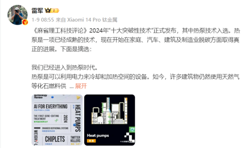 近期国内热泵技术相关的热点主要由董明珠和雷军贡献。