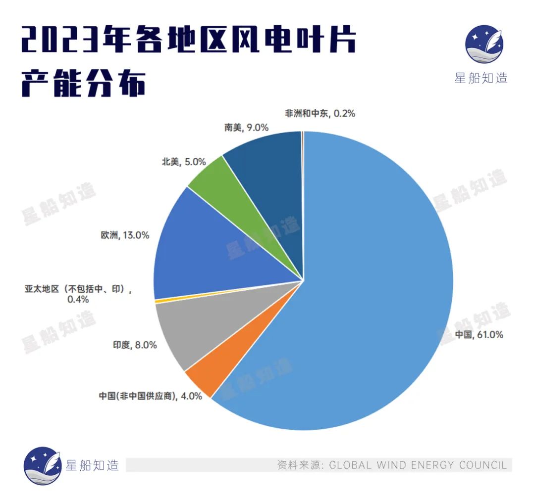 2) 叶片:中国产能占全球的64%(101GW),同时有多项性能位居世界前列,比如制造商时代新材,风电叶片规模位居国内第二,在风力发电领域成为风电叶片规模国内第二的风电叶片制造商,还率先研发生产了海陆两用风力发电叶片。