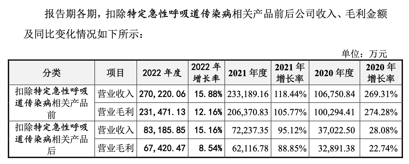 2020年-2022年,公司来自特定急性呼吸道传染病相关产品的收入分别为6.97亿元、16.10亿元、18.70亿元。