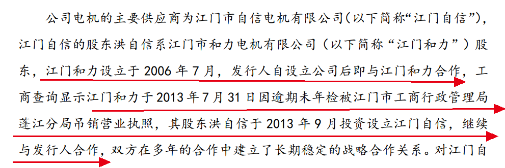 博菱电器在成立时,便与洪自信设立的江门和力合作。2013年7月,江门和力因逾期未年检被江门市工商行政管理局蓬江分局吊销营业执照,洪自信于2013年9月投资设立江门自信,继续与博菱电器合作。
