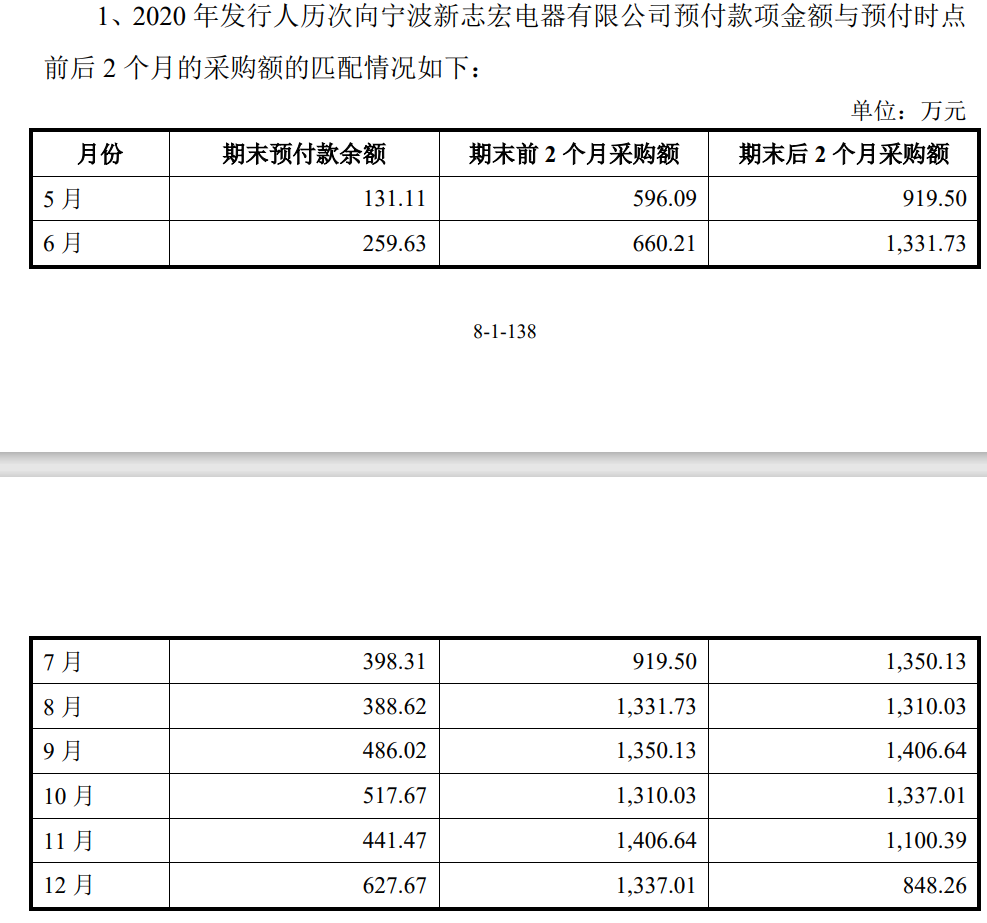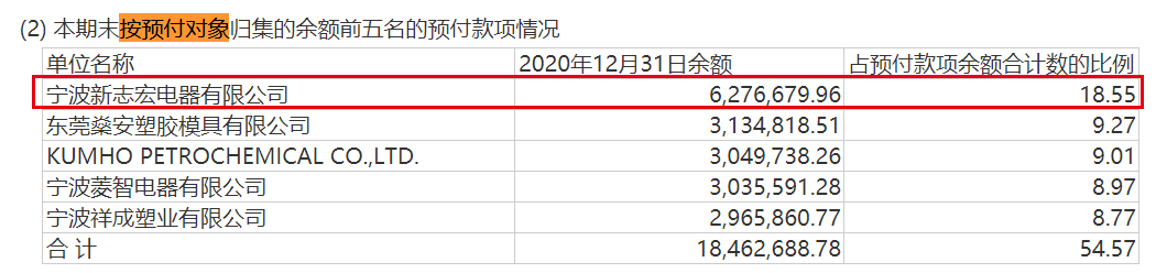 但「创业最前线」发现,2020年,博菱电器数次向新志宏电器预付款项。截至2020年末,博菱电器向新志宏电器的预付款余额为627.67万元,占预付款项余额的18.55%,是博菱电器当年前五大预付对象的第一名。