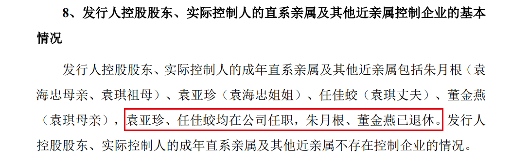 另据招股书透露,袁琪祖母朱月根、母亲董金燕均已退休,董金燕未在公司任职,但通过博誉美伦持有部分股份。
