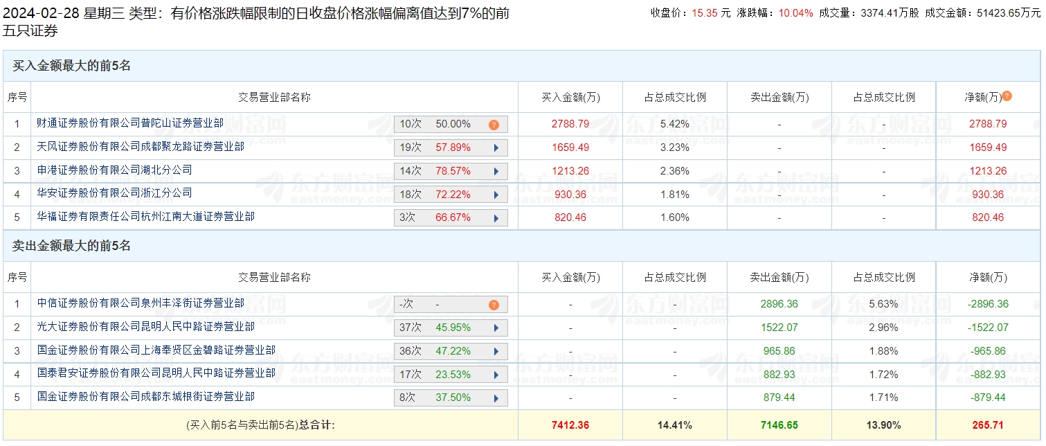 该股此前走出8连板涨停行情。截至2月28日收盘,该股报收15.35元/股,成交额5.14亿元,8个交易日股价实现阶段性涨幅114.69%。