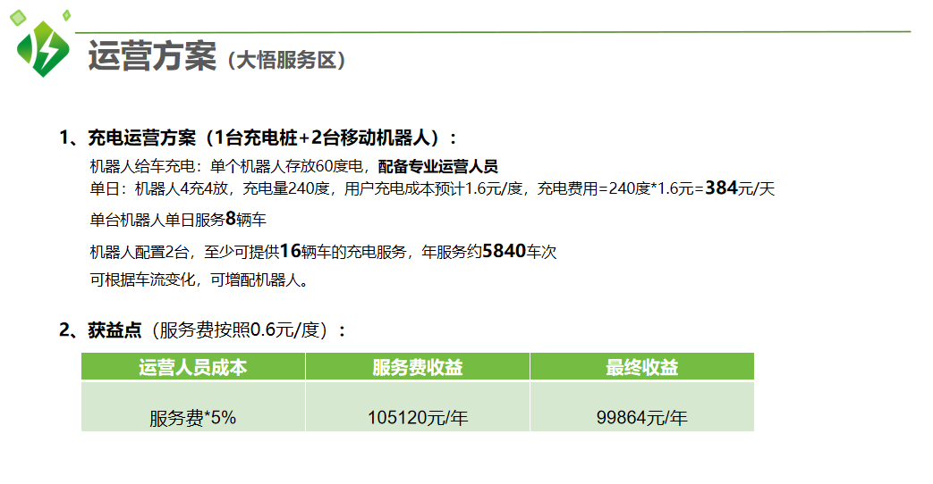 如果人流量不高、利用率低,运营商还能通过峰谷电价差赚取收益,即在晚上电价波谷时给机器人充满电,第二天波峰电价的时候再放电,由此赚取差价回本。