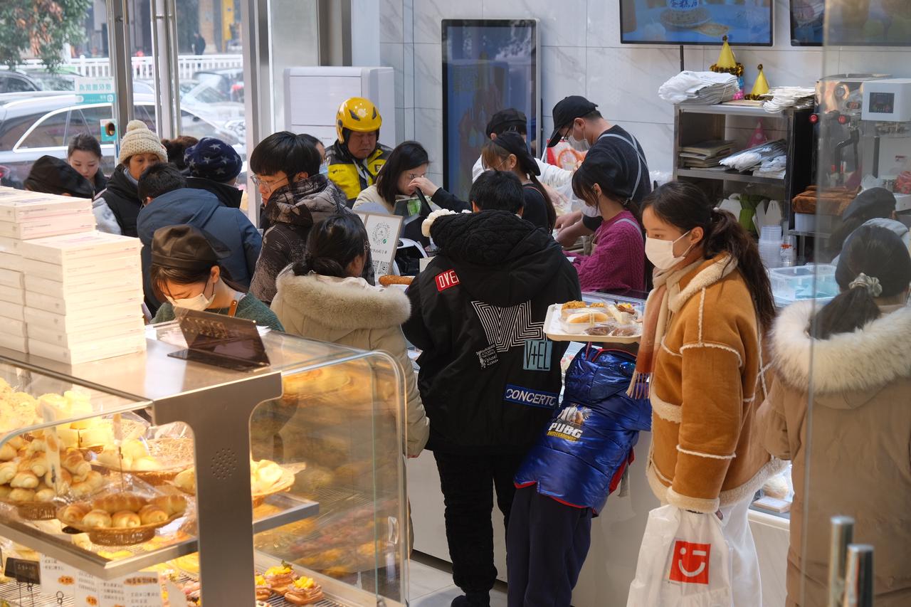 在蛋糕店等待杨海燕时,我看到不少年轻人会径直走到橱窗前,挑选完蛋糕直接买单,看样子都是熟客。蛋糕店门口立着一个广告牌,上面是蛋糕店的微信小程序。一些人买完单后,也会拿出手机扫码,注册成会员后提前预定蛋糕。杨海燕说,现在小程序一年销售额也能达到100万元。