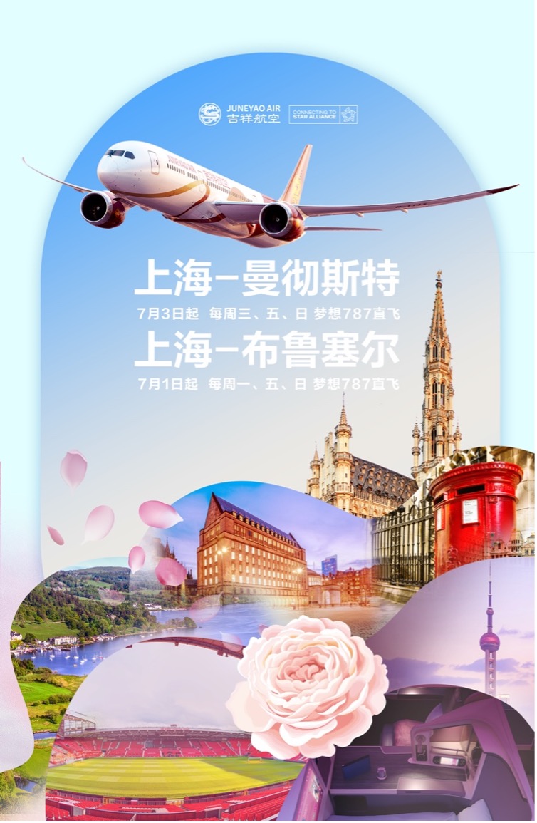1. 吉祥航空官宣英国、比利时全新洲际航线