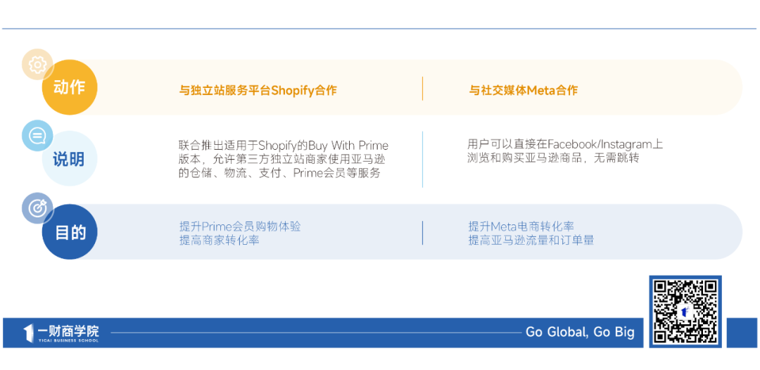 面对共同的敌人,业绩增长压力增加的Shopify,选择与亚马逊握手言和,允许独立站使用亚马逊基础设施与Prime会员服务,有助于独立站商家提高销售转化,也增加了Prime会员对亚马逊的粘性。