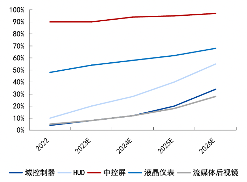 智能座舱不同产品渗透率