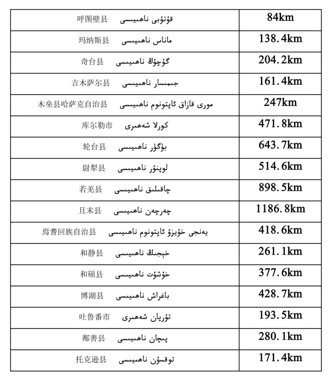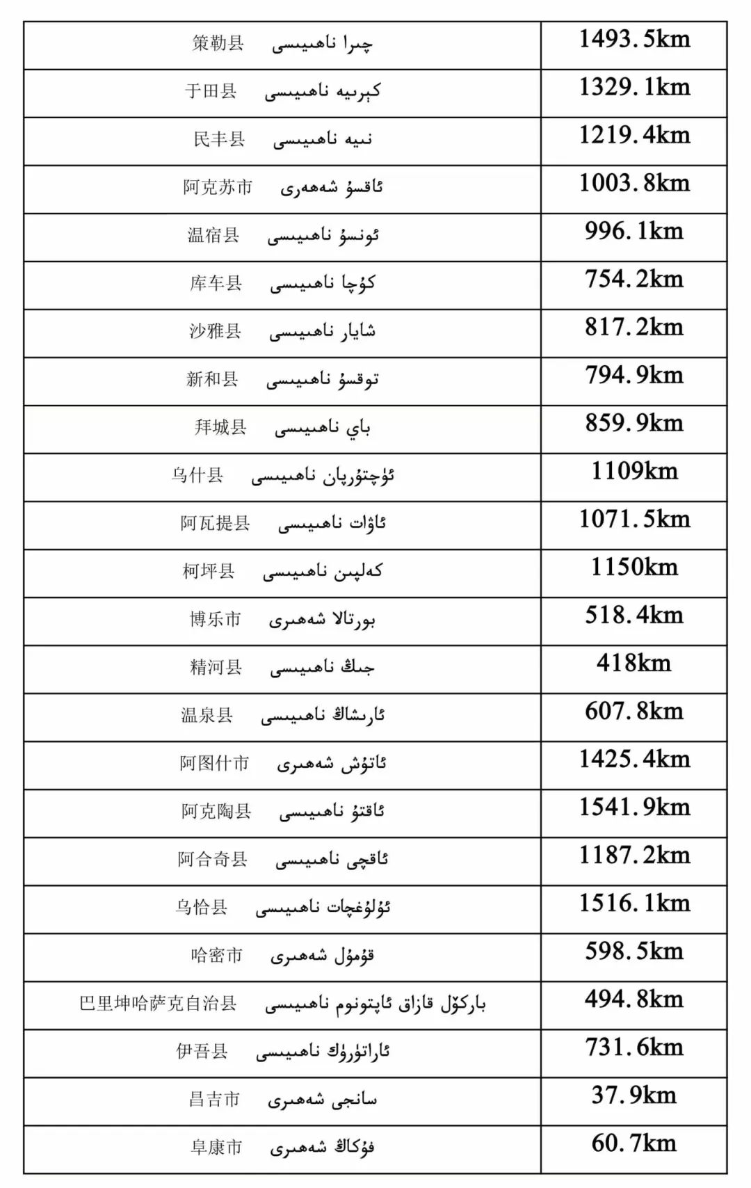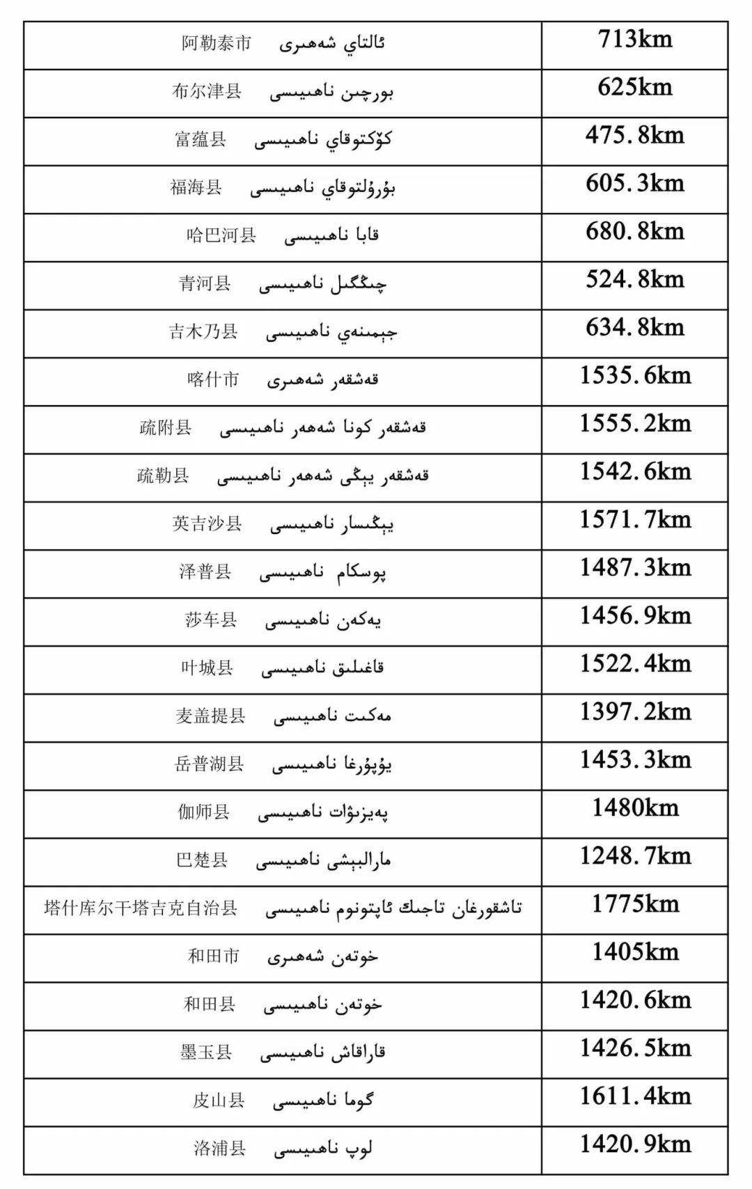 最直观的数据是,新疆首府乌鲁木齐,距新疆其他地区,近则37.9公里,远则1775公里。