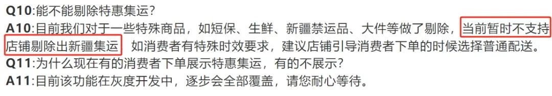 除了一些短保、生鲜等特殊商品外,商家无法拒绝参与集运。