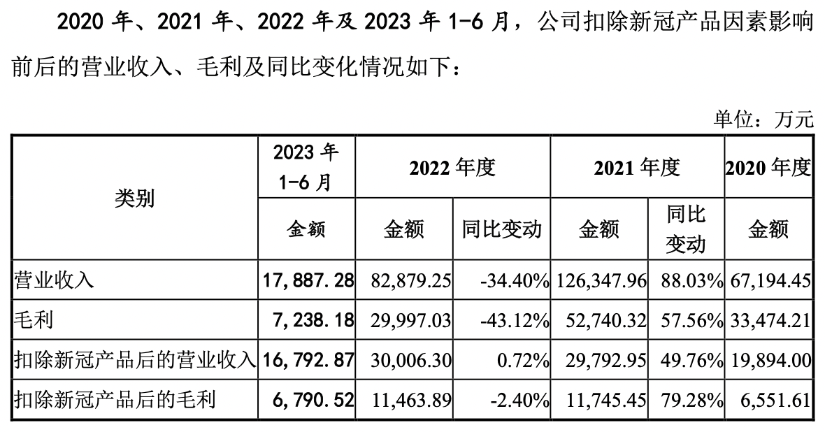 有分析人士指出,因新冠疫情导致业绩大涨具有偶发性,扣除这部分业务,公司的基本面如何?是否达到上市标准,是否符合板块定位。期后业绩出现大幅下滑,触及相应监管审核红线,因此很难说明公司的经营持续性和成长性了。