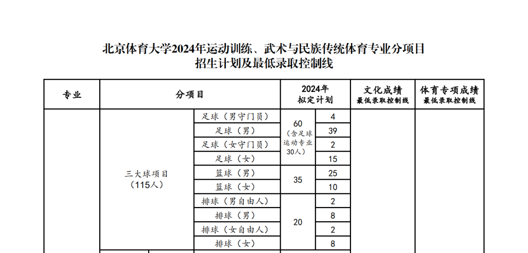 登录官网查阅《北京体育大学2024年足球运动专业招生办法》,官方的描述是:招生要求与我校当年度运动训练、武术与民族传统体育专业,足球项目招生要求一致。