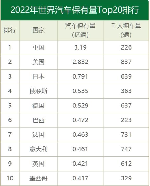 我国千人拥车量只有226辆,不仅远低于美国、日本等发达国家,与俄罗斯、墨西哥也有差距。