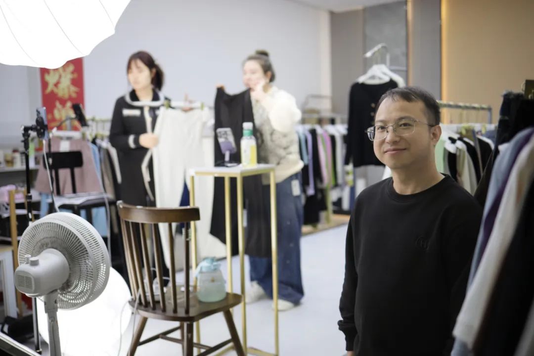 不过当访客跟随他穿梭于直播间现场、公司仓库时,他会很快切换为接地气的服装老板。直播打光、仓库理货,哪个环节有纰漏,他都会第一时间发现。