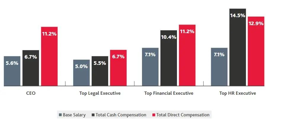 整体来看,美国保险公司在职高管总收入平均涨幅为6.4%,并处于逐年递增趋势。