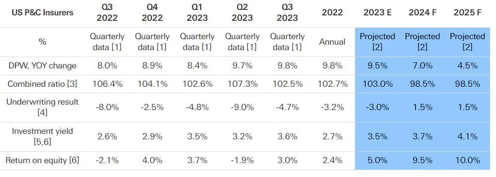 从盈利能力来看,2023 年前三个季度承保金额为 330 亿美元,2022年同期为190亿美元,增长73.68%,但是从第三季度开始,净保费收入增长9%,净索赔增长6%,同时预计2024年和2025年均保持近10%的增长,形势良好。