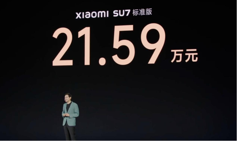 20点47分,小米SU7价格最终打在了大屏上:21.59万元。雷军用降价三万元,来表达小米对米粉朋友们的诚意。