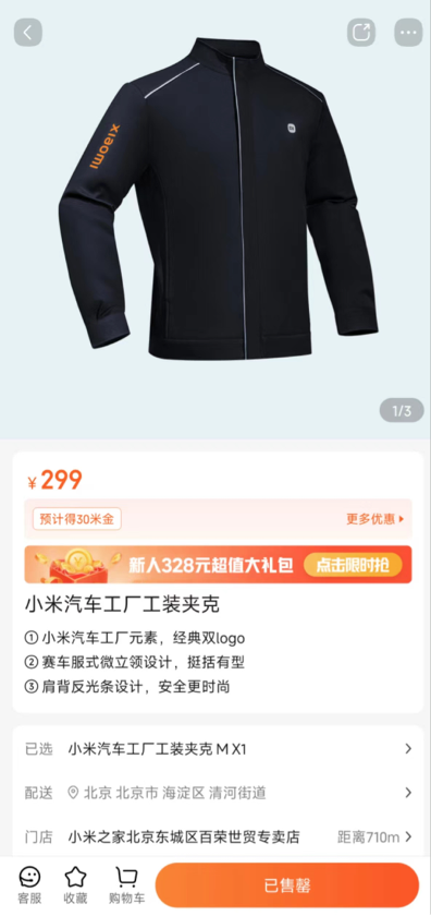 就连雷军视频中穿着的同款工装,都成为了米粉们的抢购目标。雷军表示,该款工装为小米汽车工厂工装,同款工装已经在小米商城上架,售价为299元,限量800件。但是目前在商城显示已售罄。