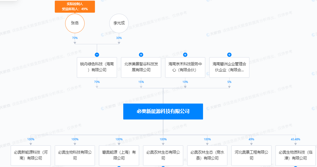 然而,这家名不见经传的公司当时才成立两年多。天眼查显示,必奥科技成立于2020年,注册在北京房山美景创新科技园区,注册资本1亿元,实缴资本850万元;公司专注于秸秆资源化利用技术,业务范围包括新能源技术推广等服务,货物及技术进出口,软件服务,销售文化体育用品等。