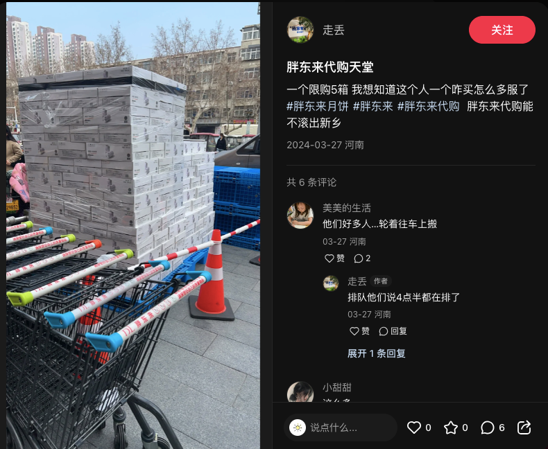 一次扫货几十万都司空见惯,更牛x的是他们快把胖东来干成自己的分店了,不光有线下实体店,还有线上社群,卖得比胖东来官方商城都全。