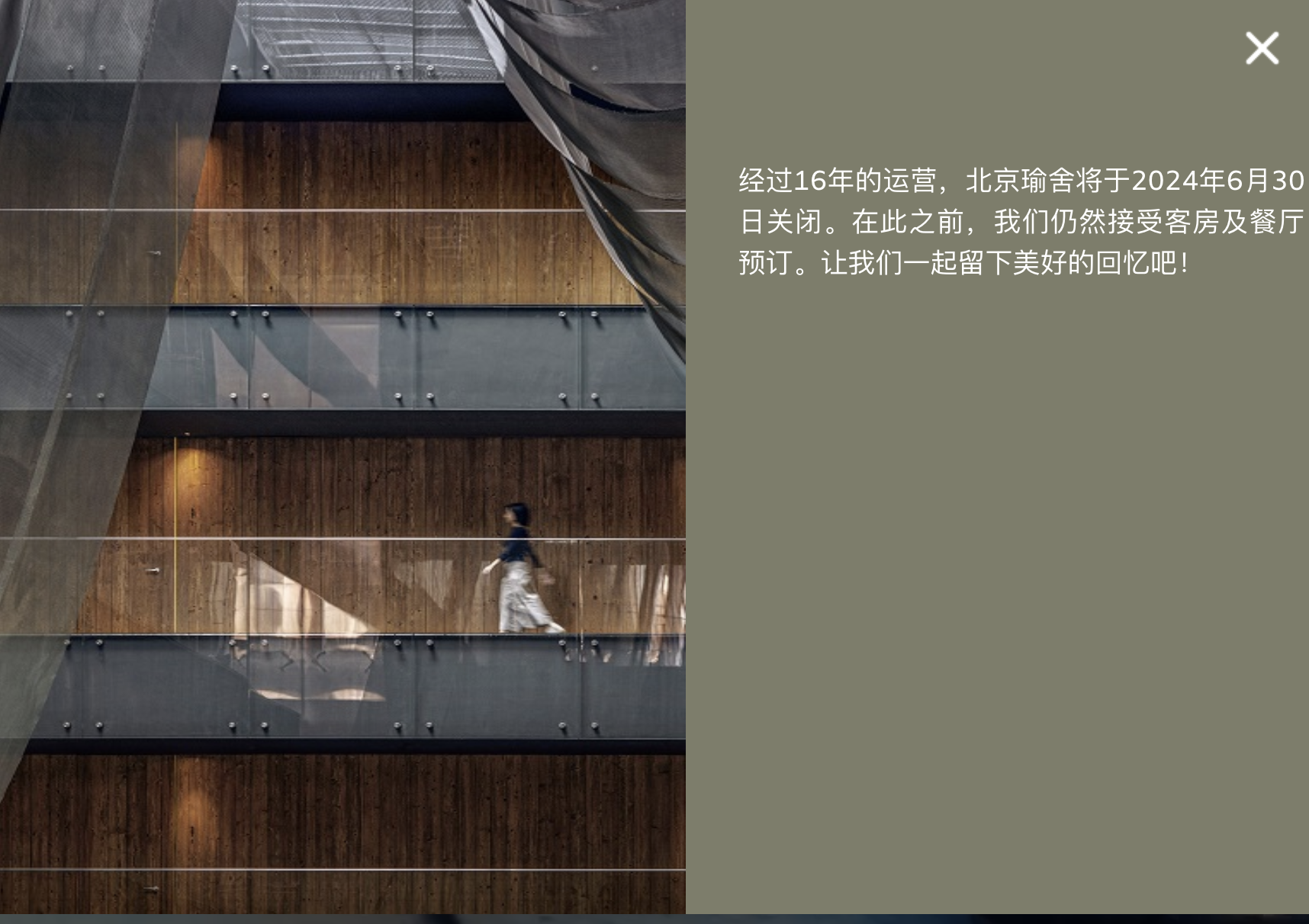 4月8日,北京瑜舍酒店宣布将于今年6月30日关闭,酒店仍然接受至6月30日的客房及餐厅预订。