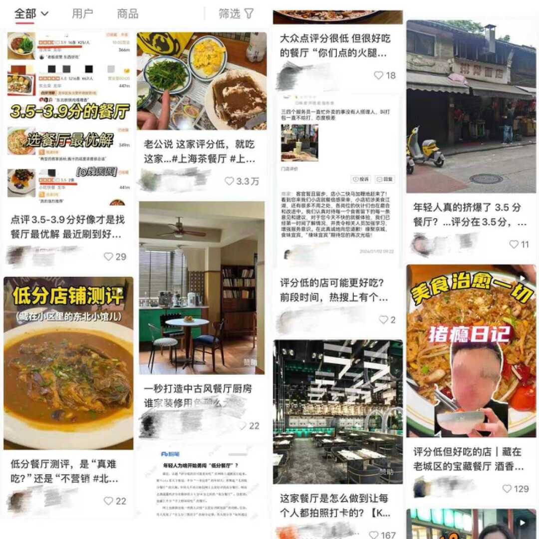 社交平台甚至有相关的攻略帖,教消费者如何找到“低评分”的“宝藏餐馆”。