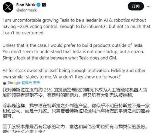 今年年初,马斯克还公开抱怨自己在特斯拉的持股比例不到25%:“除非是这样,我宁愿在特斯拉之外制造产品。”根据一份监管文件,巴格里诺已作出安排,可能在今年年底前出售多达11.55万股股票。