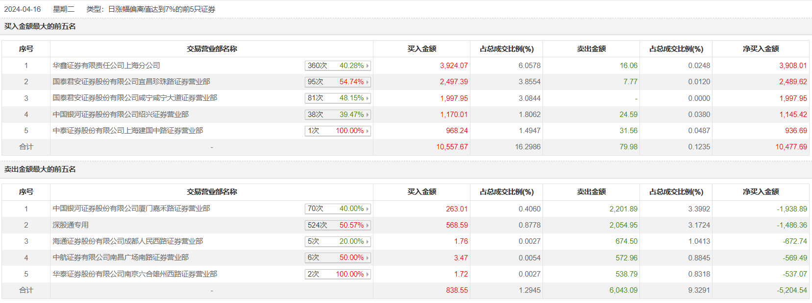 具体来看,知名游资现身龙虎榜,赵老哥(中国银河证券股份有限公司绍兴证券营业部)净买入1145.42万元。此外,华鑫证券上海分公司、国泰君安证券宜昌珍珠路证券营业部分别买入3924.07万元、2497.39万元;中国银河证券厦门嘉禾路证券营业部、深股通专用分别卖出2201.89万元、2054.95万元。