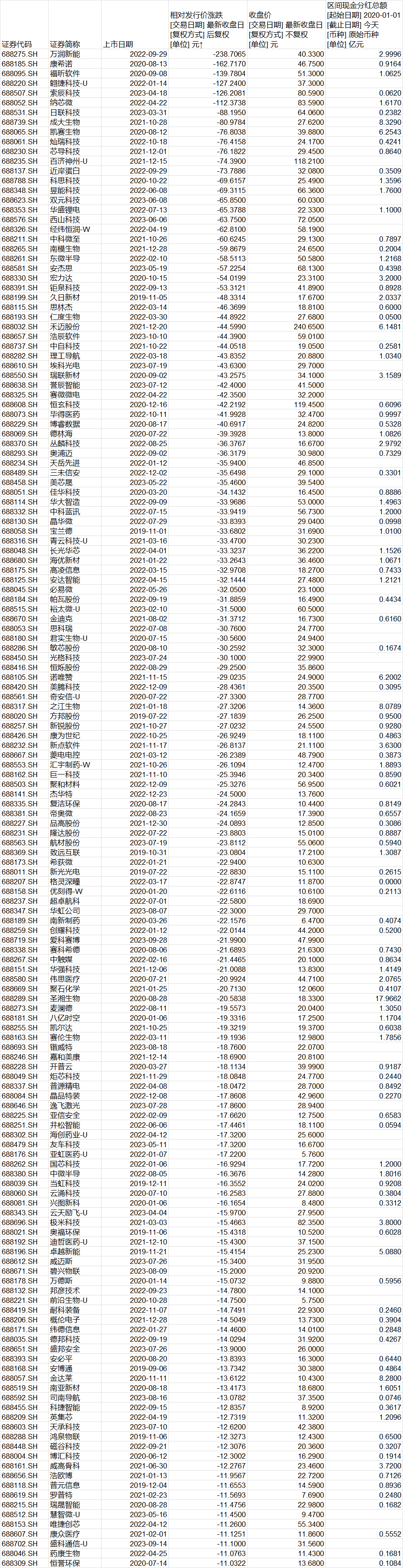 157家科创板公司较发行价跌去超10元/股