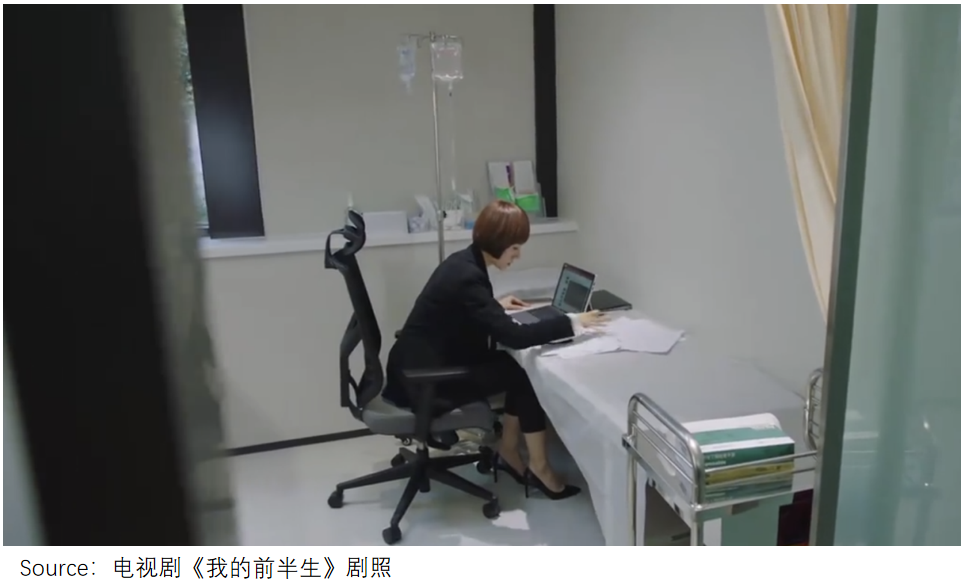 电视剧里《我的前半生》里,女强人唐晶一边打点滴一边赶文件,还不忘跟同事抱怨,“来医院已经浪费了我一上午的时间”。