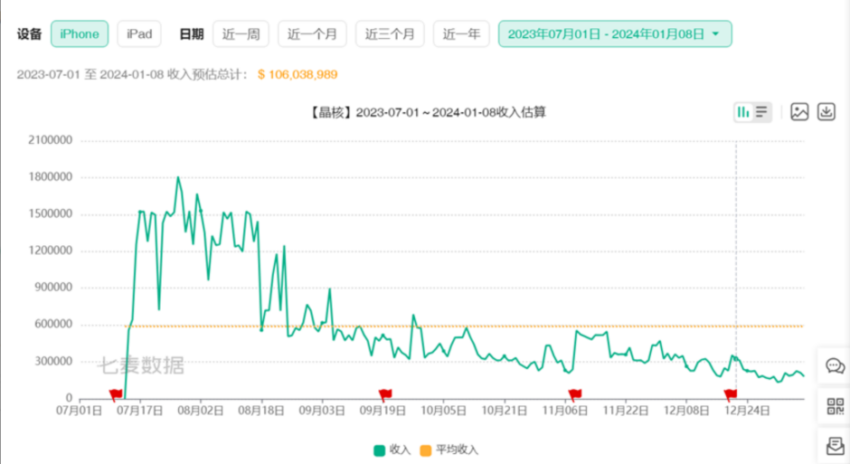 以朝夕光年的标杆产品《晶核》《星球:重启》为例,七麦数据显示,《晶核》上线以来,排名、收入均呈现高开低走趋势,留不住用户,意味着字节为其付出的买量成本难以沉淀,反倒背负长期运营成本压力。