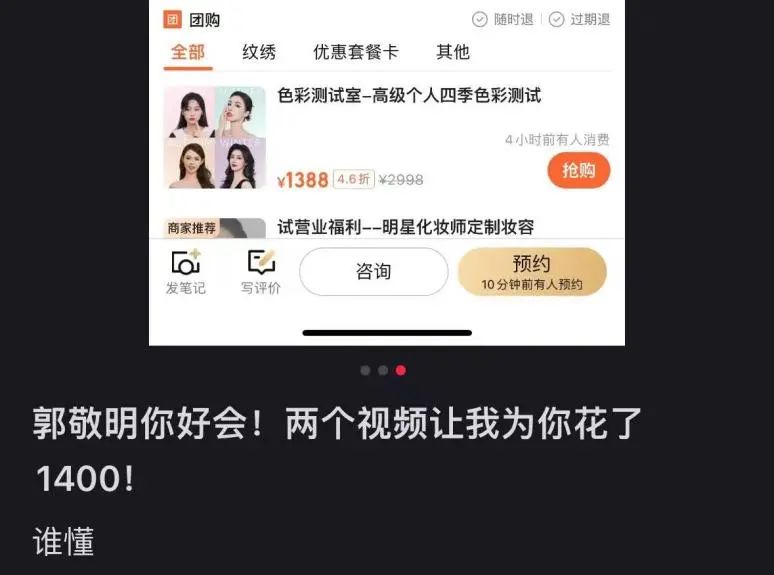 各大平台上博主们晒出的郭敬明妆造店探店的短视频,正在让不少人为他的新店激情消费1388元。