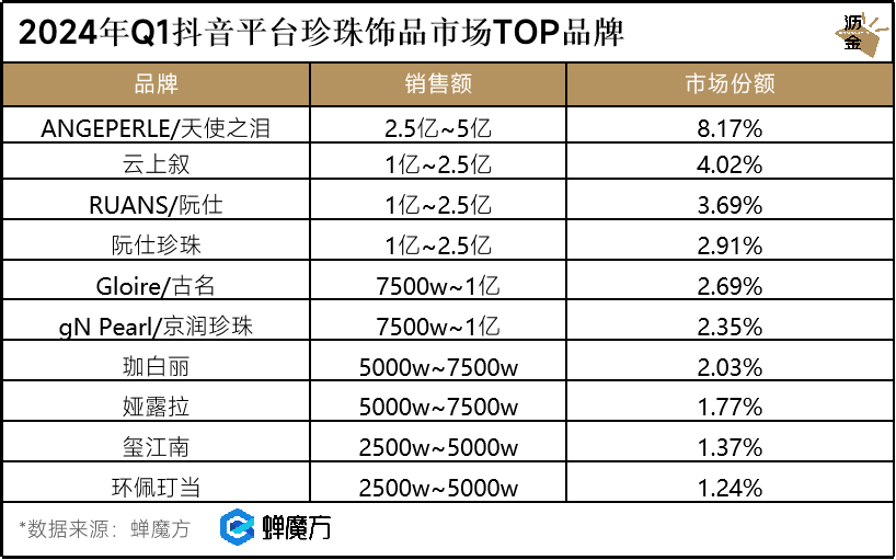 2024年Q1抖音平台珍珠饰品市场TOP品牌