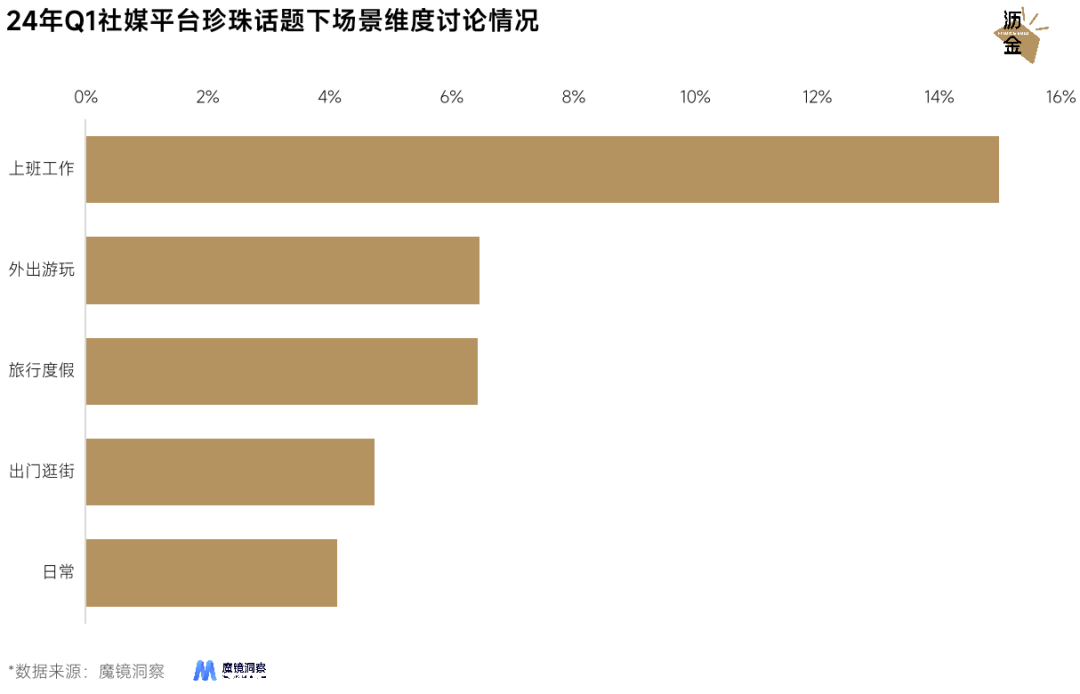 24年Q1社媒平台珍珠话题下场景维度讨论情况