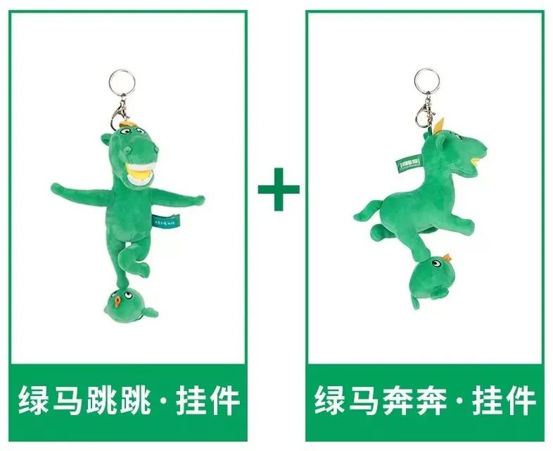 代表性案例是甘肃省博物馆的镇馆之宝铜奔马,以此为原型设计的绿色小马“跳跳和奔奔”,丑萌而魔性。官方介绍里,它属于甘博“神马来了”铜奔马文创IP的衍生品,设计者说,这款绿马玩偶充满积极乐观的精神,想要传递简单真实的快乐和满满的绿色祝福,不畏一切,欢乐前行。