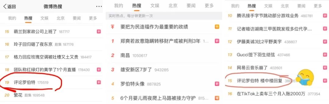 “评论罗伯特”是微博上线的评论区AI机器人,时常出没在零评论的地方,还能在评论的“楼中楼”与用户互动。凭借各种离谱、“炸裂”、抽象的评论,“评论罗伯特”很快成为用户讨论焦点。有用户会专门艾特“评论罗伯特”试图获得回复,和“评论罗伯特”有关的话题也频上热搜,相关衍生话题在平台持续保持着热度。