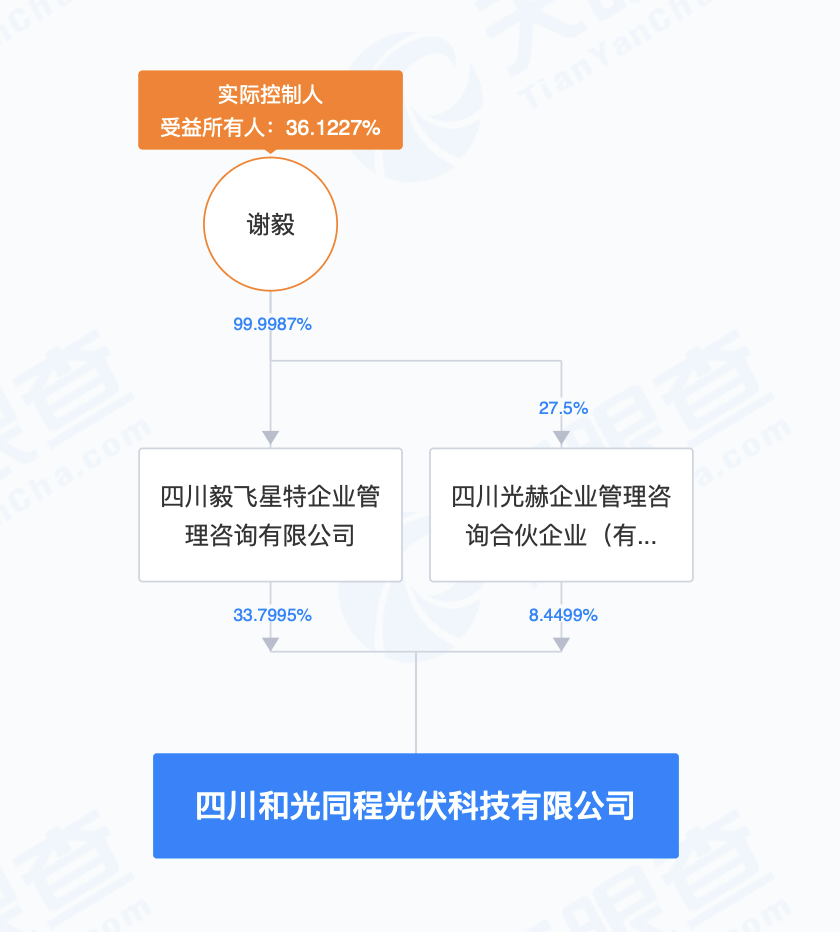 同期,通威股份创立了和光同程。截至目前,和光同程最大股东为四川毅飞星特企业管理咨询有限公司(下称毅飞星特),后者法人也是谢毅,持股比例为33.8%。第二、三大股东分别为宜宾市高新投资集团有限公司、宜宾绿色新能源产业投资基金合伙企业(有限合伙),这两家企业均为国资背景,它们分别持和光同程14.08%、9.9%股份。