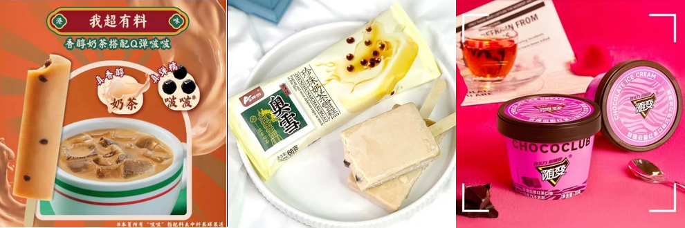 此外,茶口味的冰淇淋也在与日俱增。正所谓“打败你的往往不是同行,而是可替代品类”。几年来,冰淇淋的市场正被奶茶侵占,年轻人愿意花十多元买奶茶,却不愿意花同样的价格购买冰淇淋。在这样的竞争环境中,冰淇淋品牌开始变得“茶里茶气”,玩起了“师夷长技以制夷”的策略。