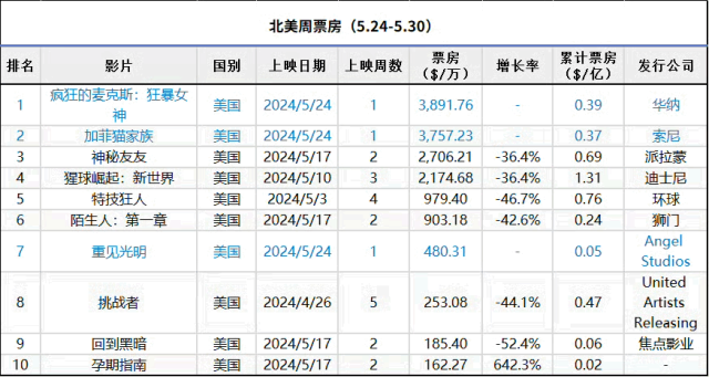 受到《麦克斯5》和《加菲猫》的双核驱动,北美周末大盘上涨5%至1.02亿美元,终于打破连续七周不破亿的纪录;但与去年同期相比仍下滑近四成,彼时《小美人鱼》领衔时单片便已近亿。
