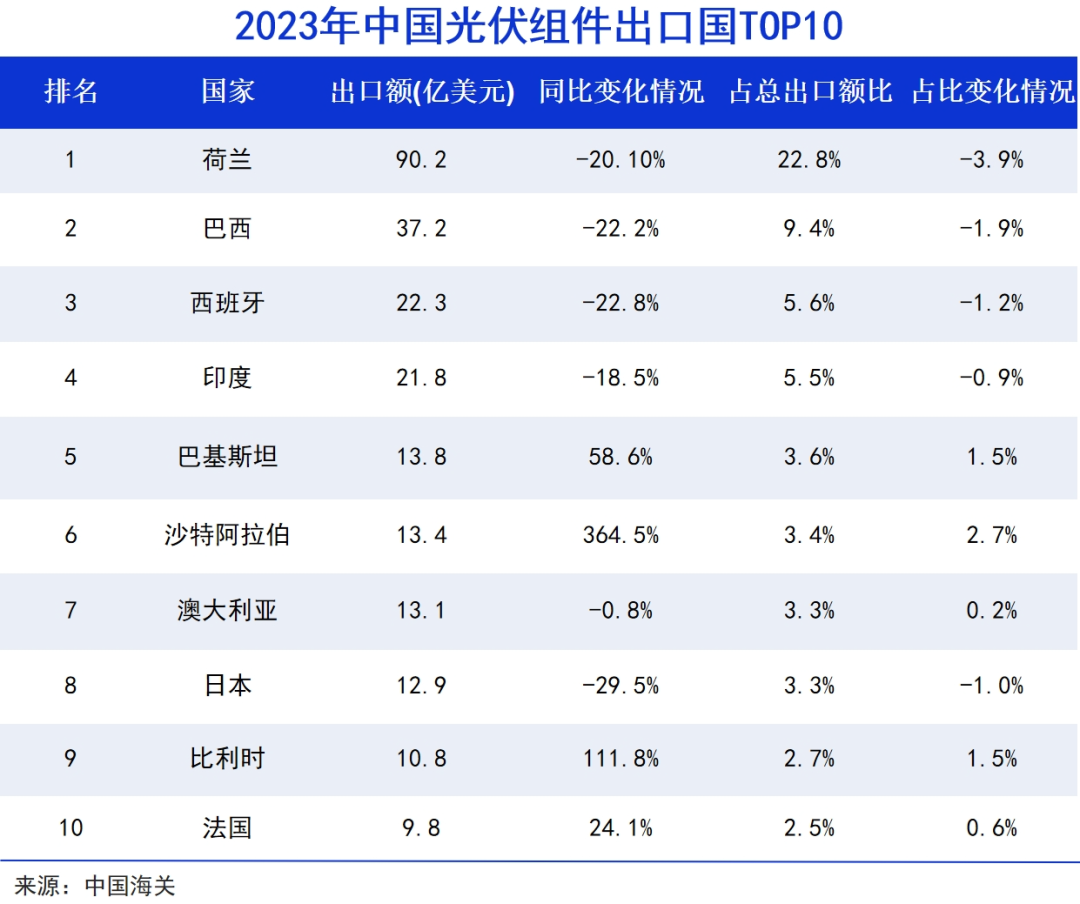 2023年我国新增装机量占全球一半,和80%占比的组件并不相符。巨大的产能只能通过出口全球市场来消化。如朱共山所说,全球光伏产业链深度重构,中国企业全面出海早已成为必选项。