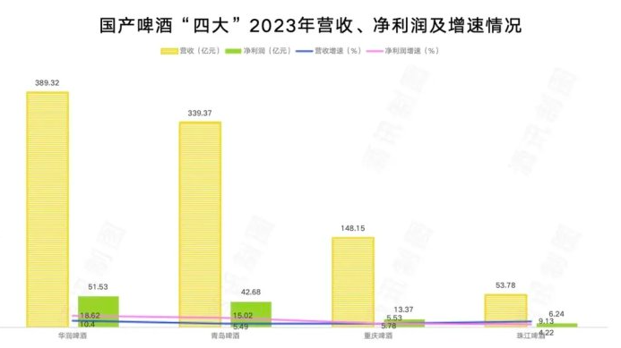 当然,从行业增速与“四大”的增速情况也可以看到,龙头酒企在高端化势能有强有弱,其中,重庆啤酒(5.78%)、珠江啤酒(4.43%)的净利润增速远低于行业增速,后续高端转型战略的落实,或将面临或调整或加速的节奏换挡。