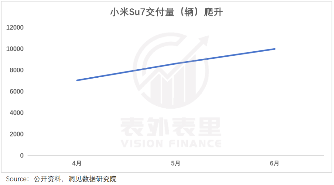 从4月开始交付,Su7持续放量,截止到6月底,已经交付超过2.5万台,是保时捷Taycan2023年中国交付量的近6倍。