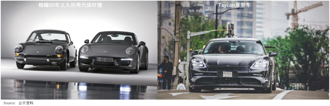 而保时捷近百年走过来,车型都大同小异:911相隔50年的两款车型,仍状如“孪生”;Taycan的身上又处处是911的影子。