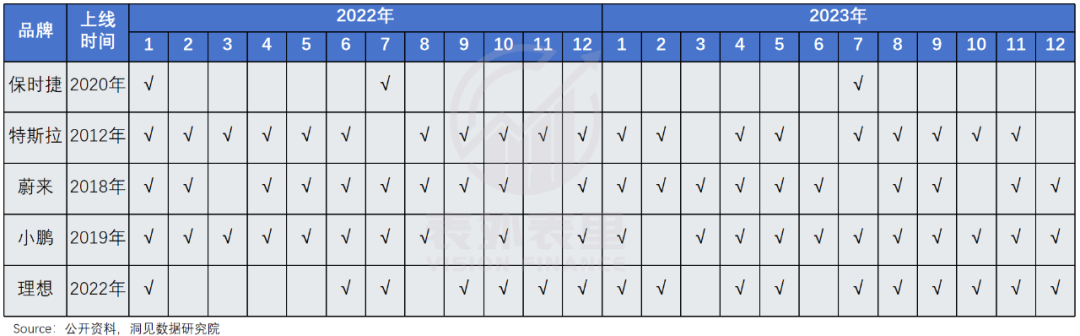 过去2年,保时捷更新OTA功能的次数屈指可数,而特斯拉和国产新能每隔1-3个月就会更新一次。