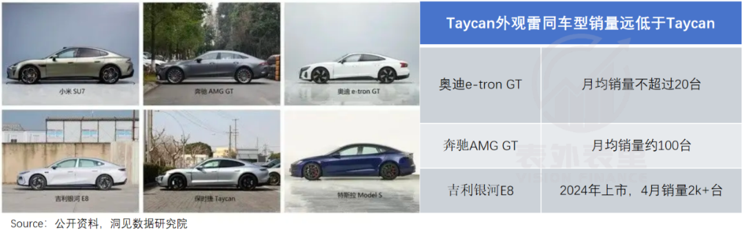 可Su7的放量,让尊贵的保时捷车主可能会被误认为是没啥钱的屌丝,毕竟已经有不少人将Taycan错认成Su7。